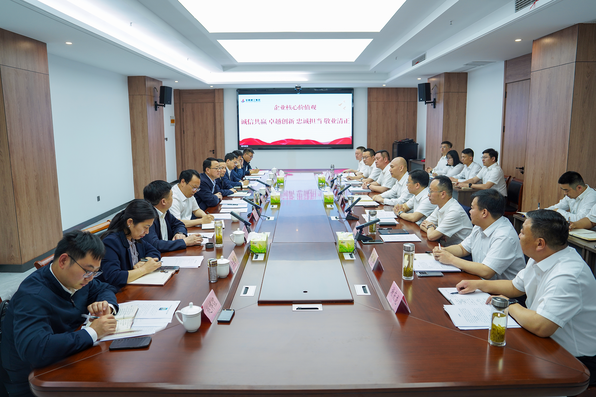 7月2日上午,建工宿州投發(fā)公司黨委召開慶祝建黨104周年表彰會暨黨課報告會,建工股份黨委委員、副總經(jīng)理,建工宿州投發(fā)公司黨委書記、董事長朱忠明出席會議,傳達集團慶祝建黨104周年表彰會暨專題黨課報告會會議精神,并作題為《深化作風(fēng)建設(shè)強化責任擔當堅定發(fā)展信心全力推動公司轉(zhuǎn)型發(fā)展取得新成效》的專題黨課報告,公司黨委副書記、總經(jīng)理周國林主持會議。大會在莊嚴雄壯的國歌聲中拉開帷幕。公司副總經(jīng)理代鵬飛宣讀2